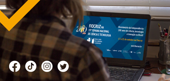 Quer ficar por dentro da SNCT? Acompanhe nossas atividades pelo Instagram, Facebook, Twitter e TikTok oficiais da Fiocruz.